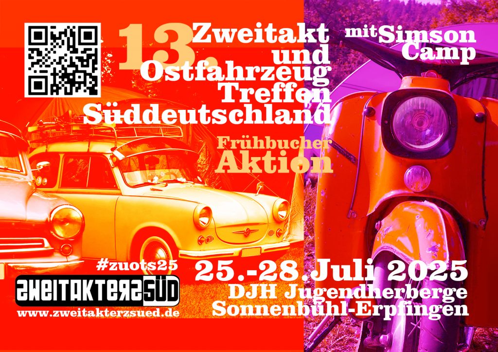 2025 hiess es zum 13. Mal Zweitakt- und Ostfahrzeugtreffen Süddeutschland oder abgekürzt #zuots. Vom 25. bis zum 28. Juli gab es in Sonnenbühl-Erpfingen erneut die große – weit über Stuttgart und das Schwabenland hinaus bekan dort, wo bekanntlich – und das sagen nicht nur die Zweitakterz Süd und ihre Gäste – “die Schwäbische Alb am schönsten ist”. Die tolle Kulisse der Schwäbischen Alb bietet einen ganz besonderen Rahmen für alle Altfahrzeugfreundinnen und -freunde und ihre Schätzchen dank der wunderbaren Lage und der perfekten Infrastruktur für das große Event.