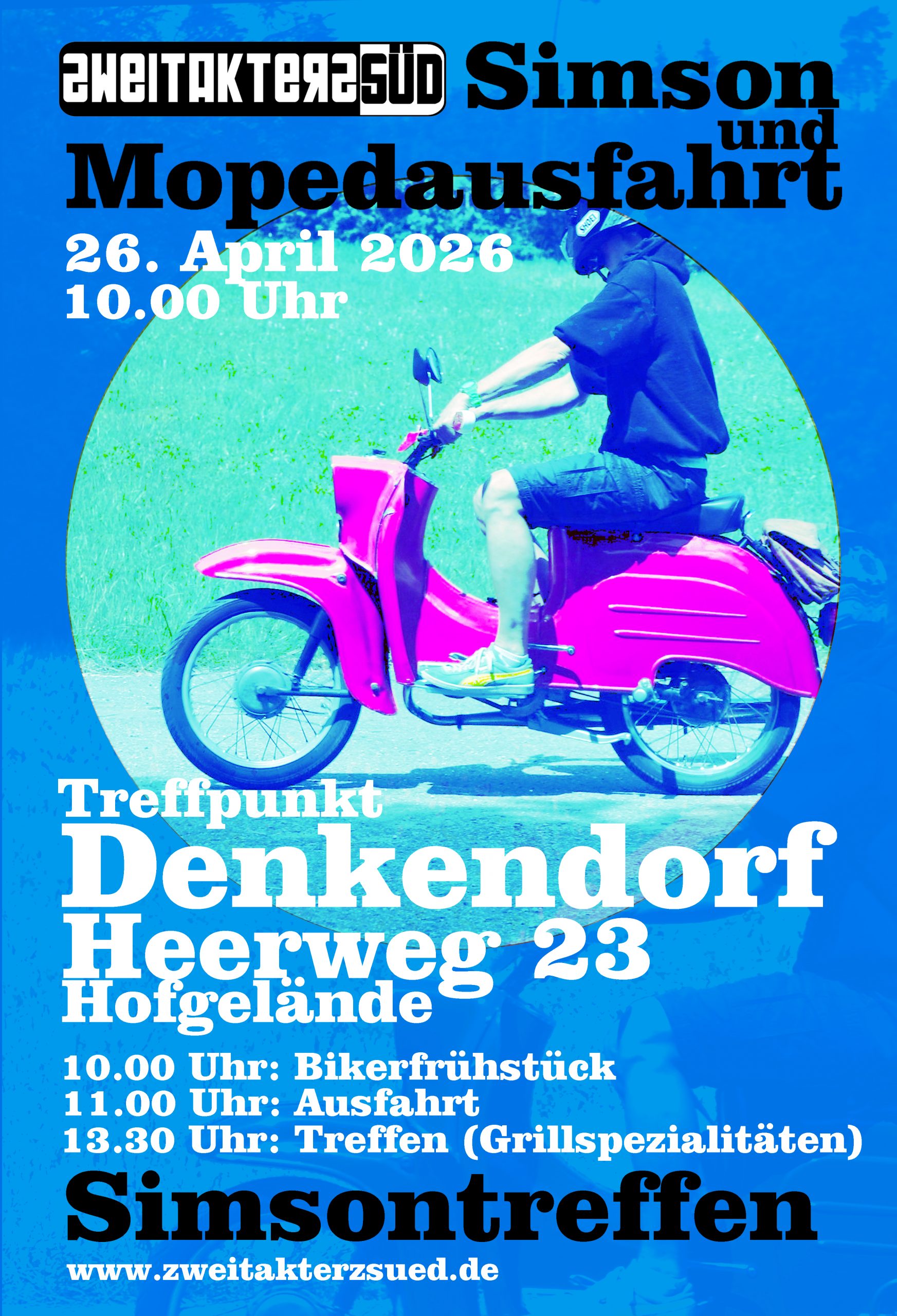 IIm April gibt es wieder die Frühjahrsausgabe unserer beliebten Simson- und Mopedausfahrt. Gerne schon jetzt in den Kalender eintragen. Wir freuen uns auf Eure Teilnahme!